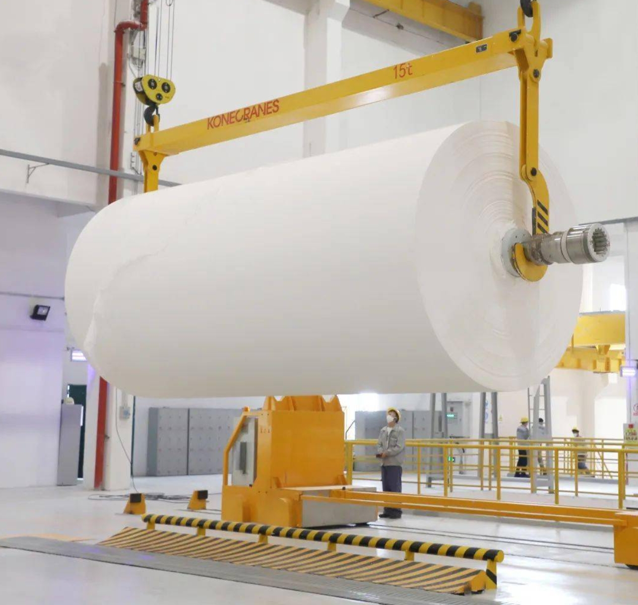 在造紙行業(yè),生產(chǎn)環(huán)節(jié)會產(chǎn)生很多蒸汽,車間環(huán)境溫度較高并且濕度大,悶熱;生產(chǎn)線上處于各個(gè)高度的滾軸和橫梁數(shù)量多??蛻粜枰獙埦磉M(jìn)行頻繁的搬運(yùn)并且對設(shè)備進(jìn)行檢修,要求起重機(jī)能防晃和雙小車同時(shí)升降誤差低。帝淮科技工業(yè)遙控配套的起重機(jī)完美解決造紙行業(yè)對起重的要求,安全可靠高效的同時(shí)大大降低了操作難度,改善了人員的工作條件。