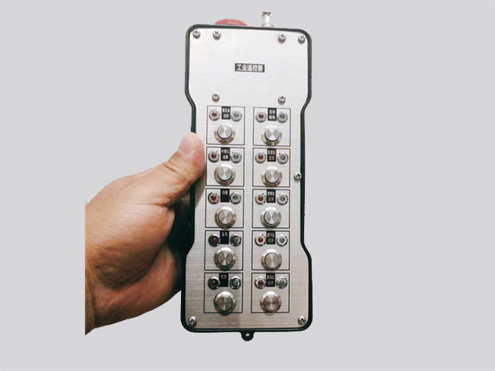 4)啟動+急停蘑菇頭旋鈕,啟動布局為旋轉(zhuǎn)開關(guān)或自鎖式按鍵,急停為歐規(guī)急停蘑菇頭式,自鎖保持模式,對應(yīng)2路繼電器輸出。啟動即為啟動發(fā)射器本身電源開關(guān),同時對應(yīng)接收器端輸出控制回路的接通,此時被控端設(shè)備通電,急停拍下,則可瞬間切斷所有輸出。發(fā)射器端的啟動按鈕關(guān)閉,發(fā)射器端電源關(guān)掉,且5秒鐘后,接收器端亦可自我急停,保障安全!
